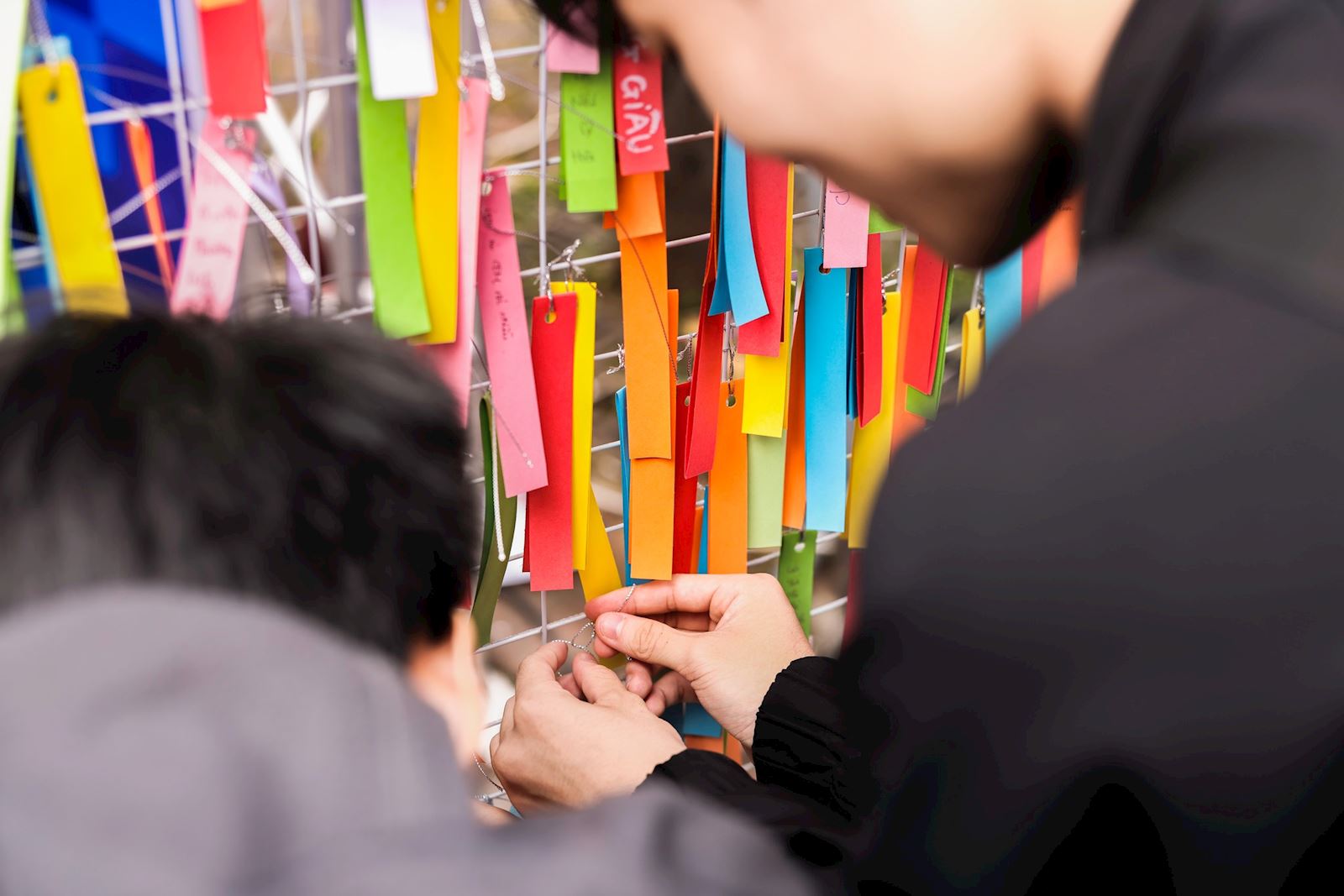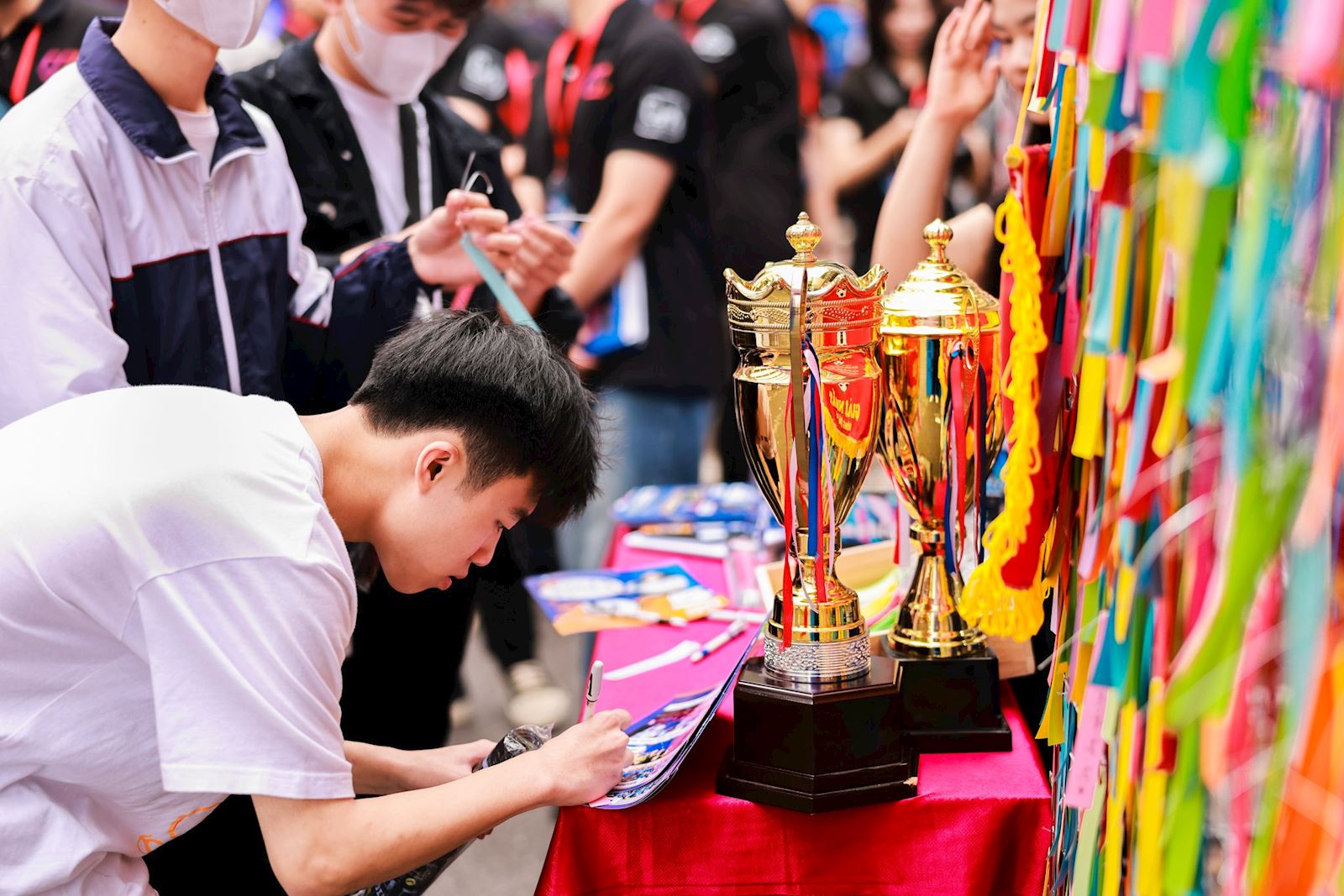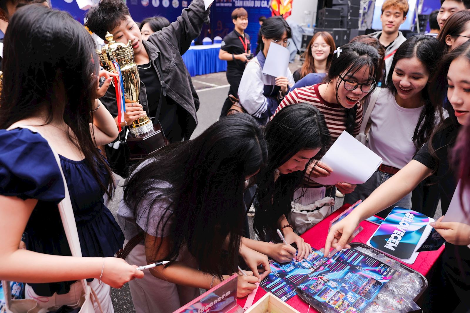 ► The photo check-in activity at the “CEM Say Hi” corner quickly became a “hot spot” that drew huge attention from high school students. The check-in area was designed with vibrant, trendy colors, creative backdrops, and eye-catching golden “lucky trophies.” It was more than just a photo zone — it became a lively space where students could interact, make connections, and get a taste of university life by meeting CEM lecturers and senior students — who might one day become their mentors and companions on their upcoming university journey.
