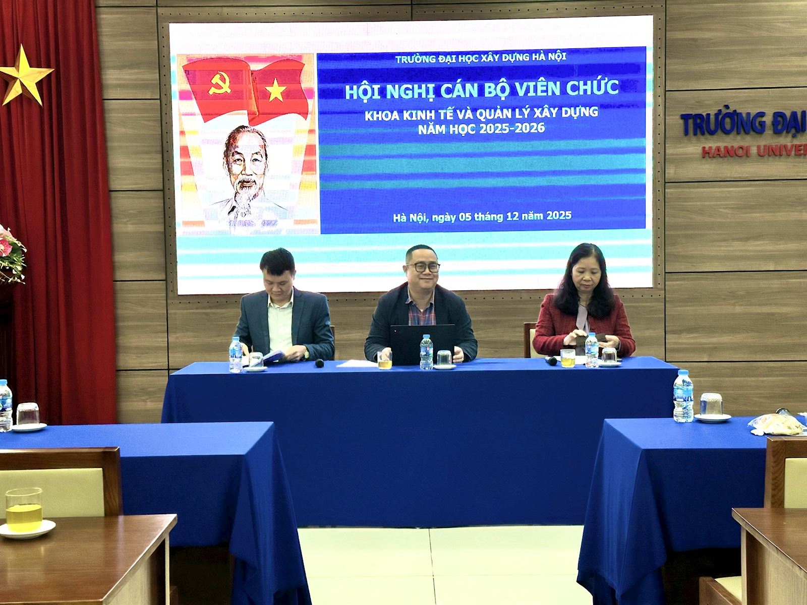 On Friday morning (December 5, 2025), the Faculty of Construction Economics and Management of Hanoi University of Civil Engineering successfully organized the Faculty Conference of Officers and Employees for the academic year 2025–2026. The Conference aimed to review the outcomes of the 2024–2025 academic year and to outline directions and key tasks for the 2025–2026 academic year.