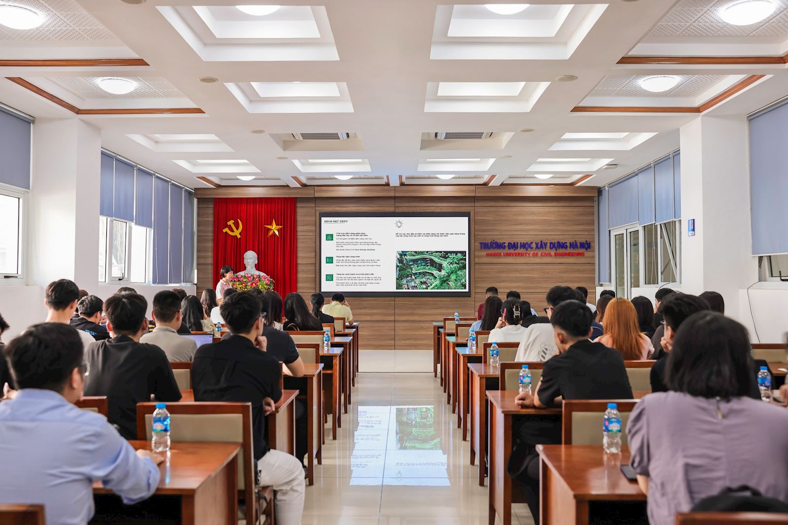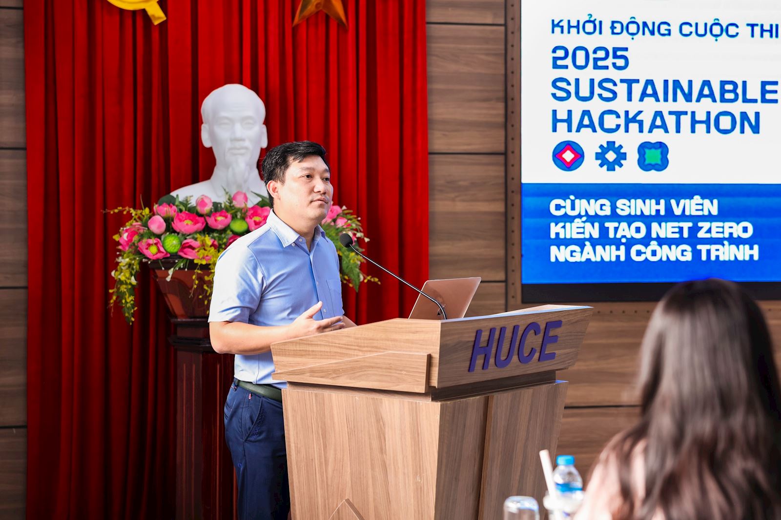 On the afternoon of Wednesday (June 11, 2025), at the 2nd Floor Hall – Library Building, Hanoi University of Civil Engineering (HUCE), the Kick-off Event of the Sustainable Hackathon 2025 took place in an energetic and exciting atmosphere. The event attracted great attention from students both within and outside the Faculty of Construction Economics and Management, officially marking the beginning of a creative and challenging journey toward achieving the Net Zero goal for Vietnam’s construction industry.