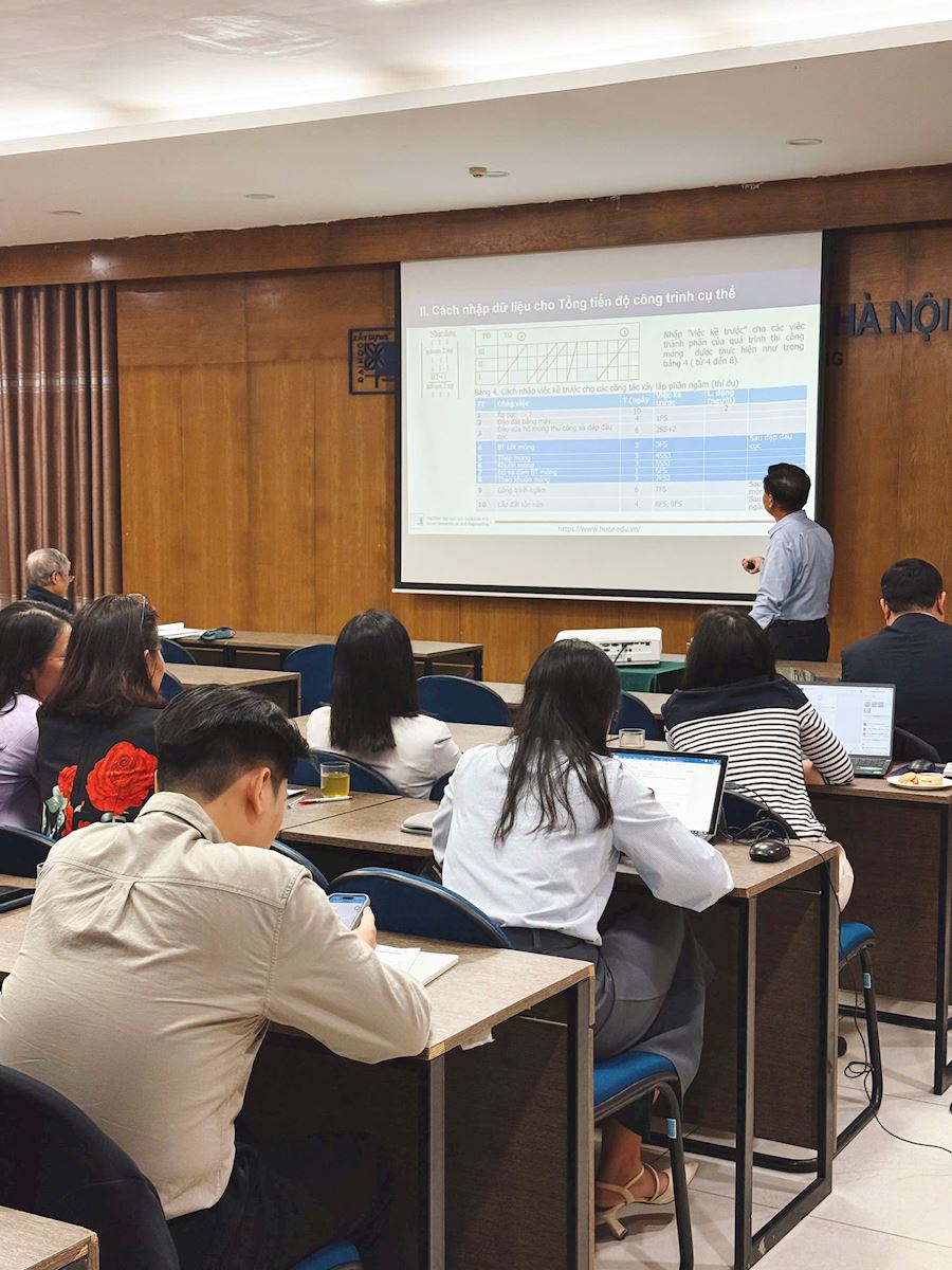 The event brought together experts and lecturers from the Faculty, who shared practical knowledge and experience on effective methods for using MS Project. These contributions helped enhance faculty members’ professional expertise in guiding students to adopt professional, practice-oriented construction scheduling approaches that closely reflect real-world conditions and can be effectively applied to their graduation projects.