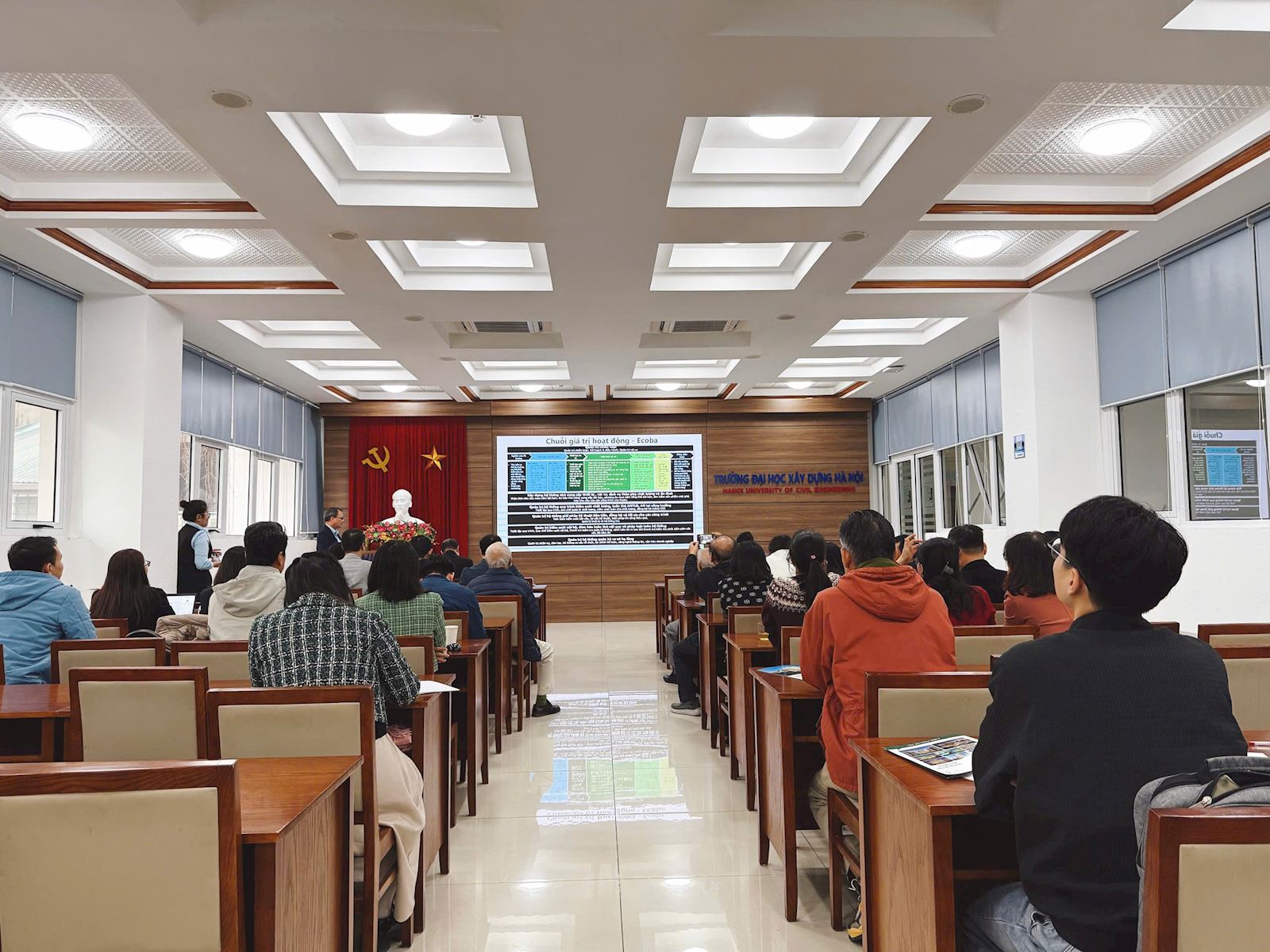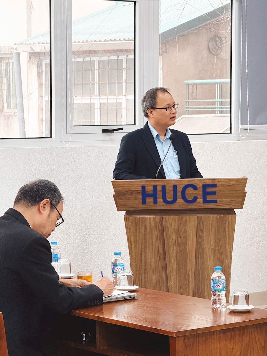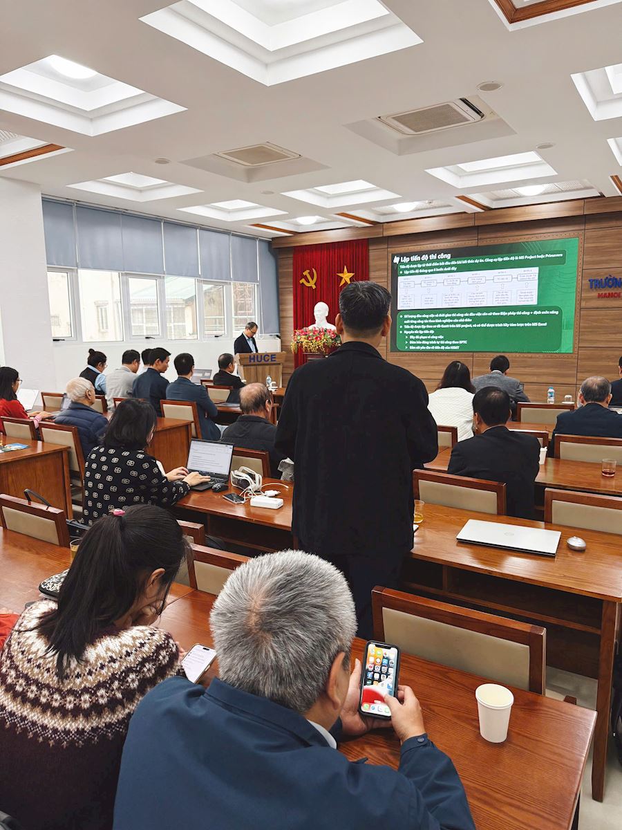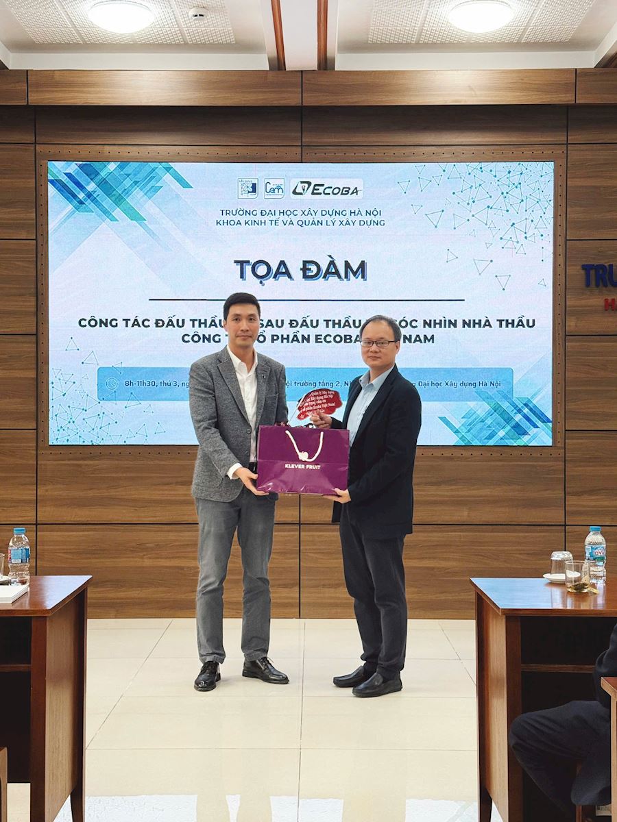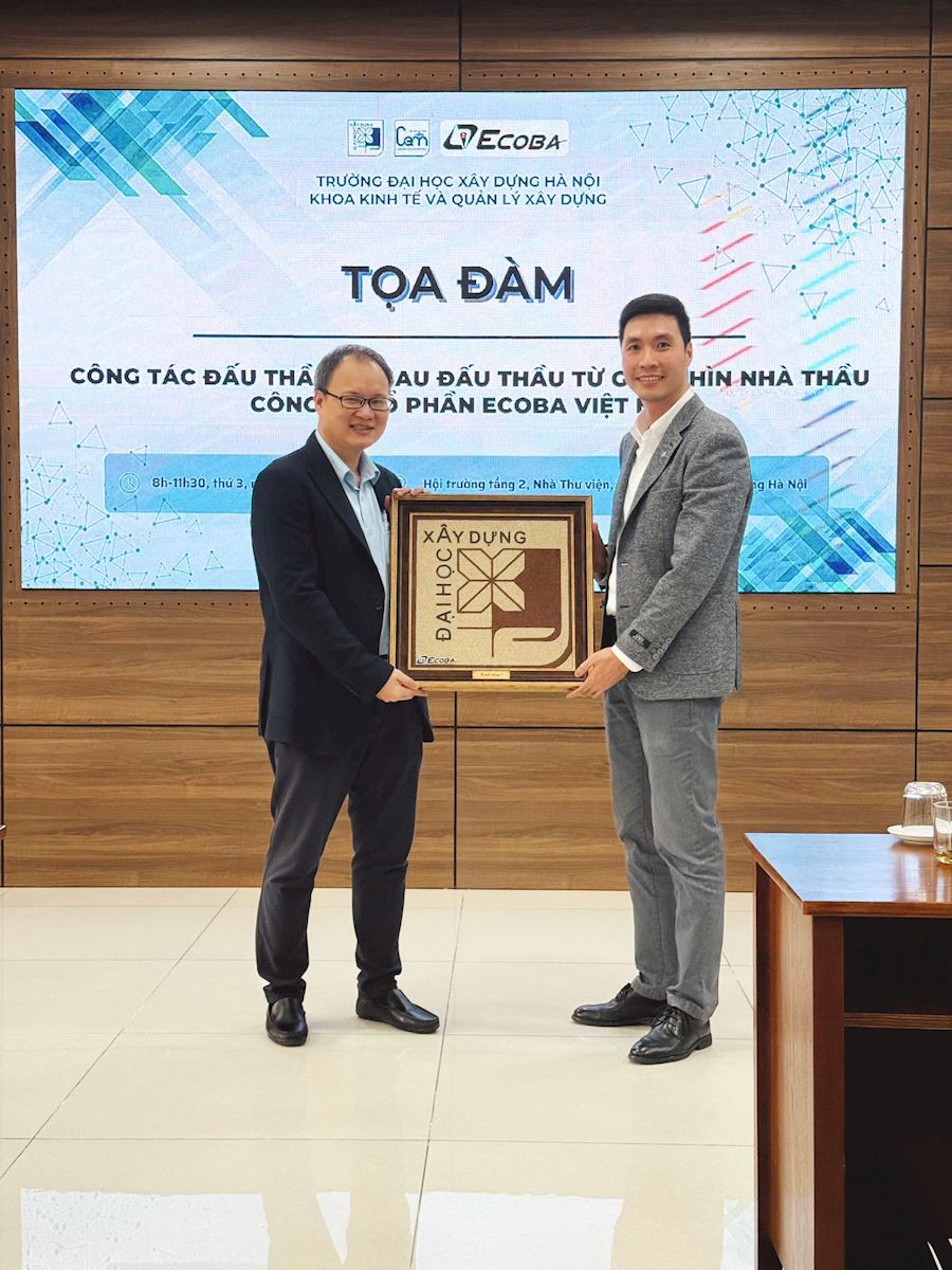 On Tuesday morning (December 16, 2025), at the Conference Hall on the 2nd Floor of the Library of Hanoi University of Civil Engineering, the Faculty of Construction Economics and Management (CEM) successfully organized its regular professional roundtable discussion entitled “Bidding and Post-Bidding Activities from the Contractor’s Perspective – Ecoba Vietnam Joint Stock Company.”