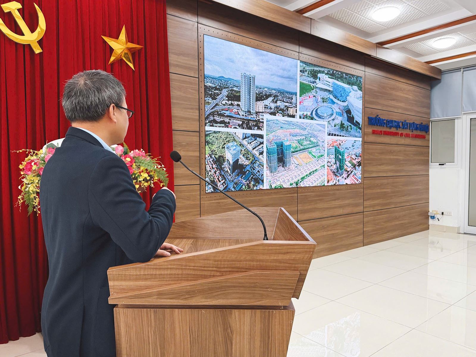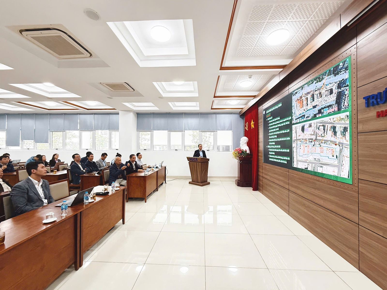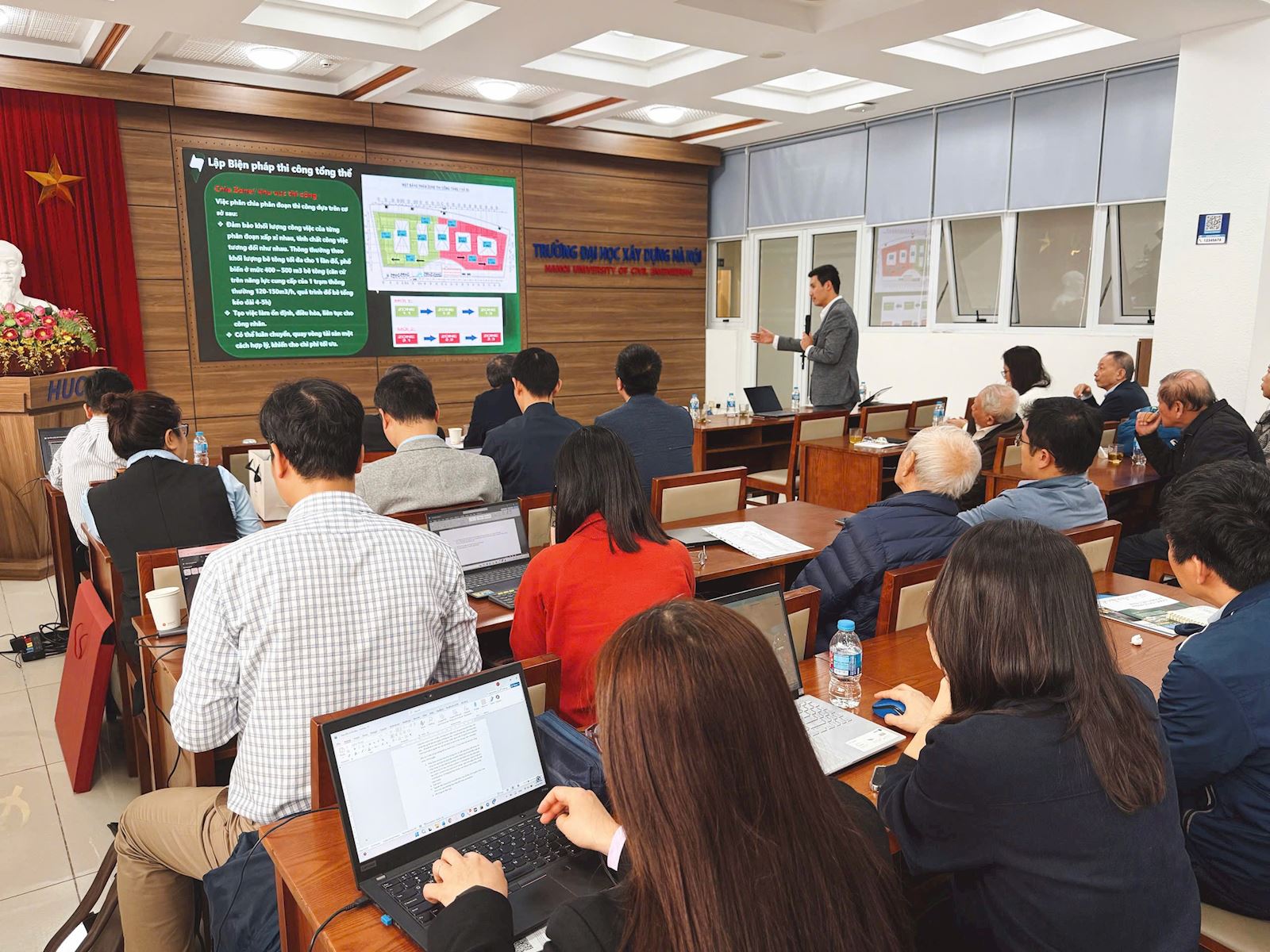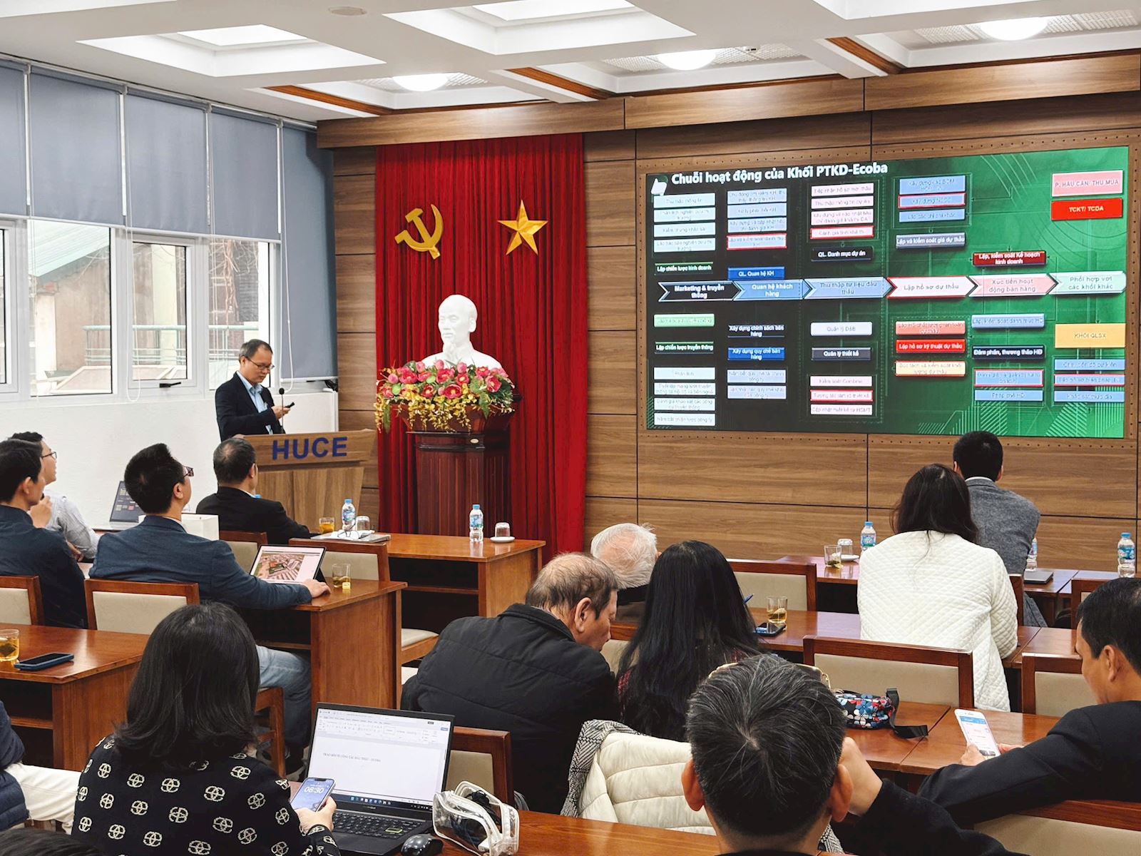 On Tuesday morning (December 16, 2025), at the Conference Hall on the 2nd Floor of the Library of Hanoi University of Civil Engineering, the Faculty of Construction Economics and Management (CEM) successfully organized its regular professional roundtable discussion entitled “Bidding and Post-Bidding Activities from the Contractor’s Perspective – Ecoba Vietnam Joint Stock Company.”